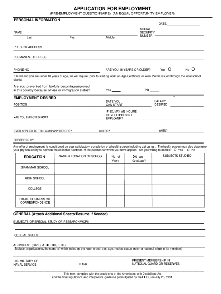 An effective application for employment form comprises several critical sections. Understanding these components is essential for filling out the form correctly and maximizing your chances of being hired.