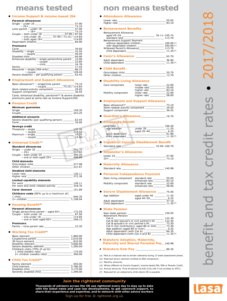 Get the free Benefit and Tax Credit Rates • 2017/2018