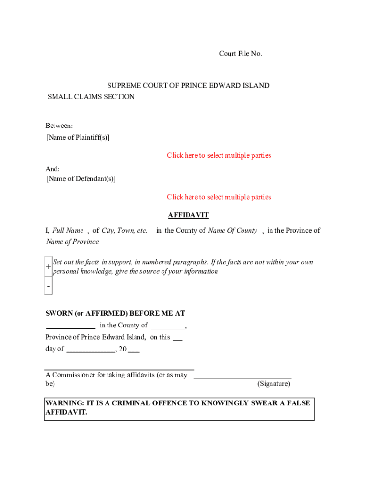 Canada Supreme Court of Prince Edward Island Affidavit 2022-2026 free printable template