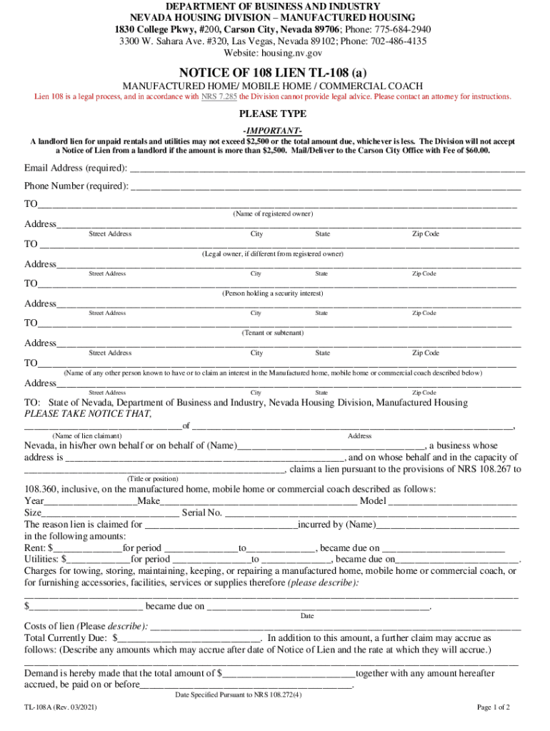 Get the free Notice of 108 Lien Tl-108 (a)