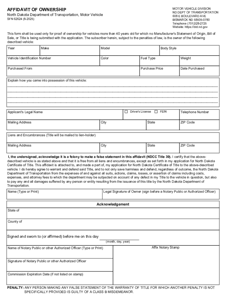 Get the free Affidavit of Ownership - dot nd