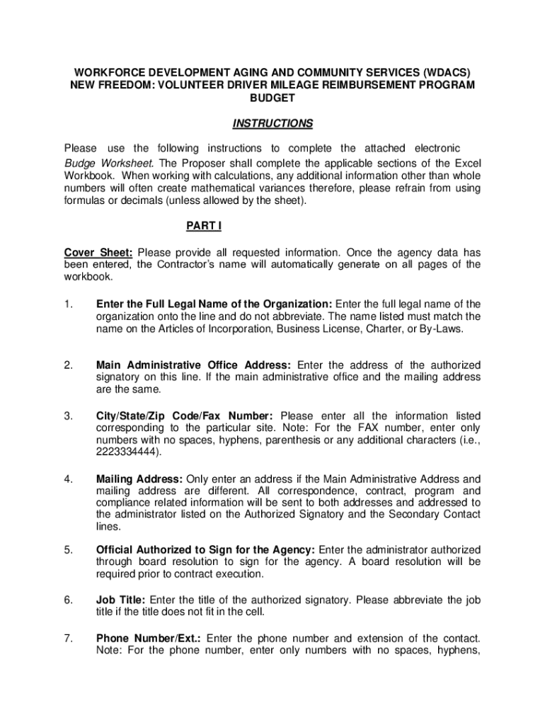 Get the free New Freedom: Volunteer Driver Mileage Reimbursement Program Budget
