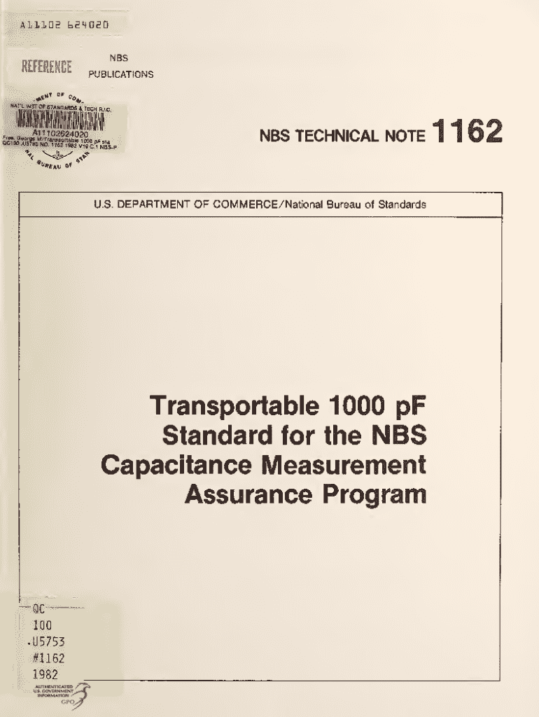 This document describes the construction and performance evaluation of a capacitance transport standard developed by the National Bureau of Standards for use in its Measurement Assurance Program.
