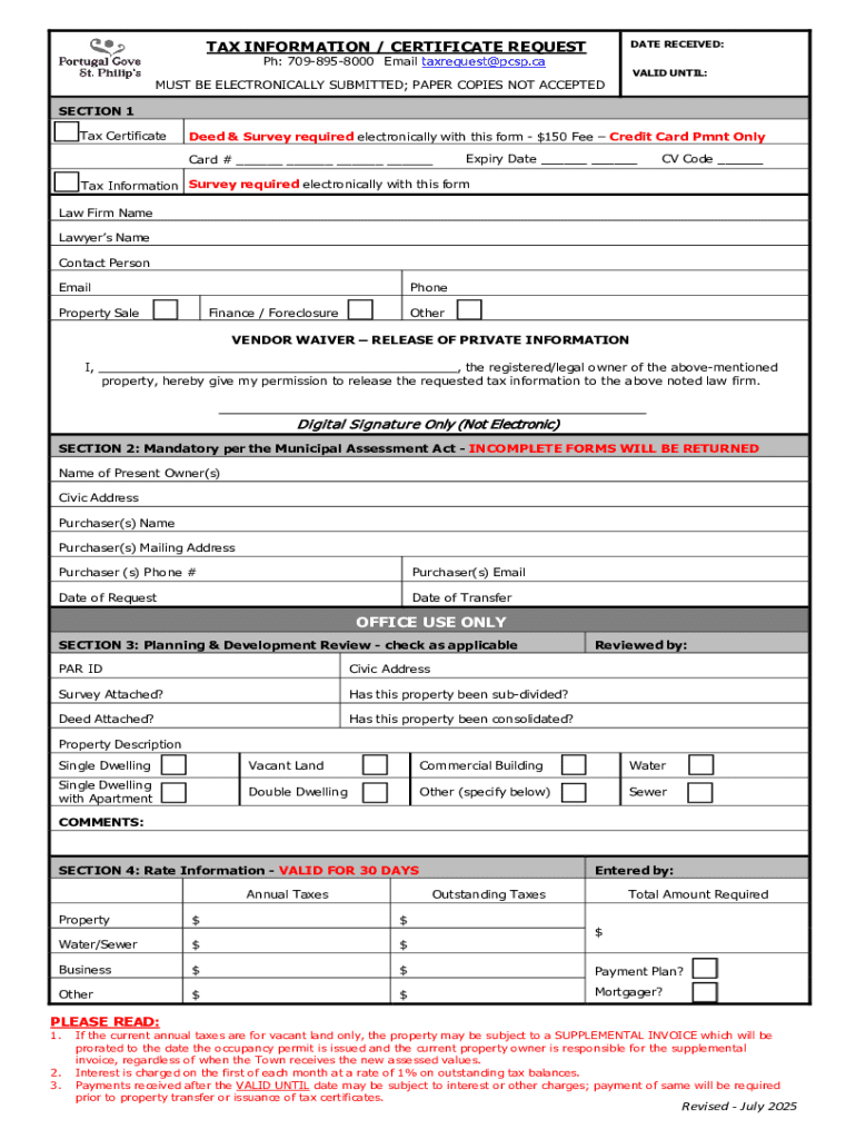 Get the free Tax Information / Certificate Request