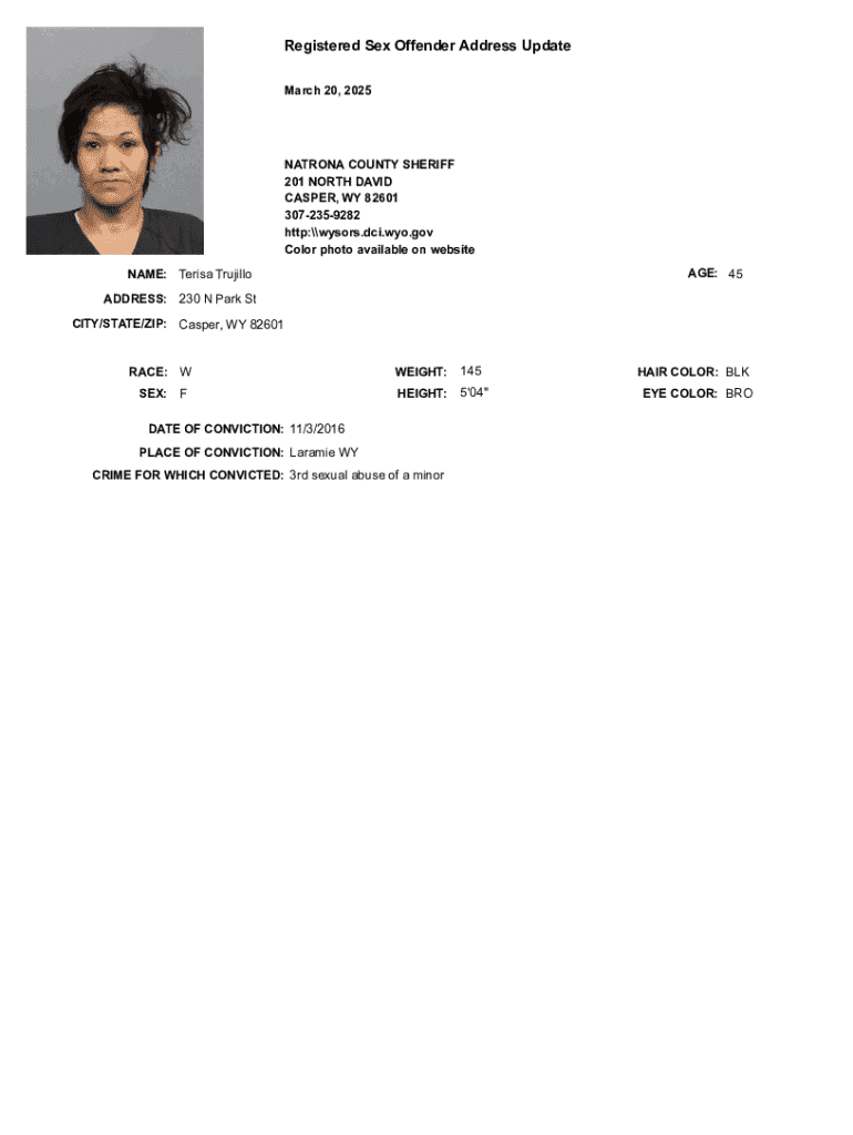 Get the free Registered Sex Offender Address Update
