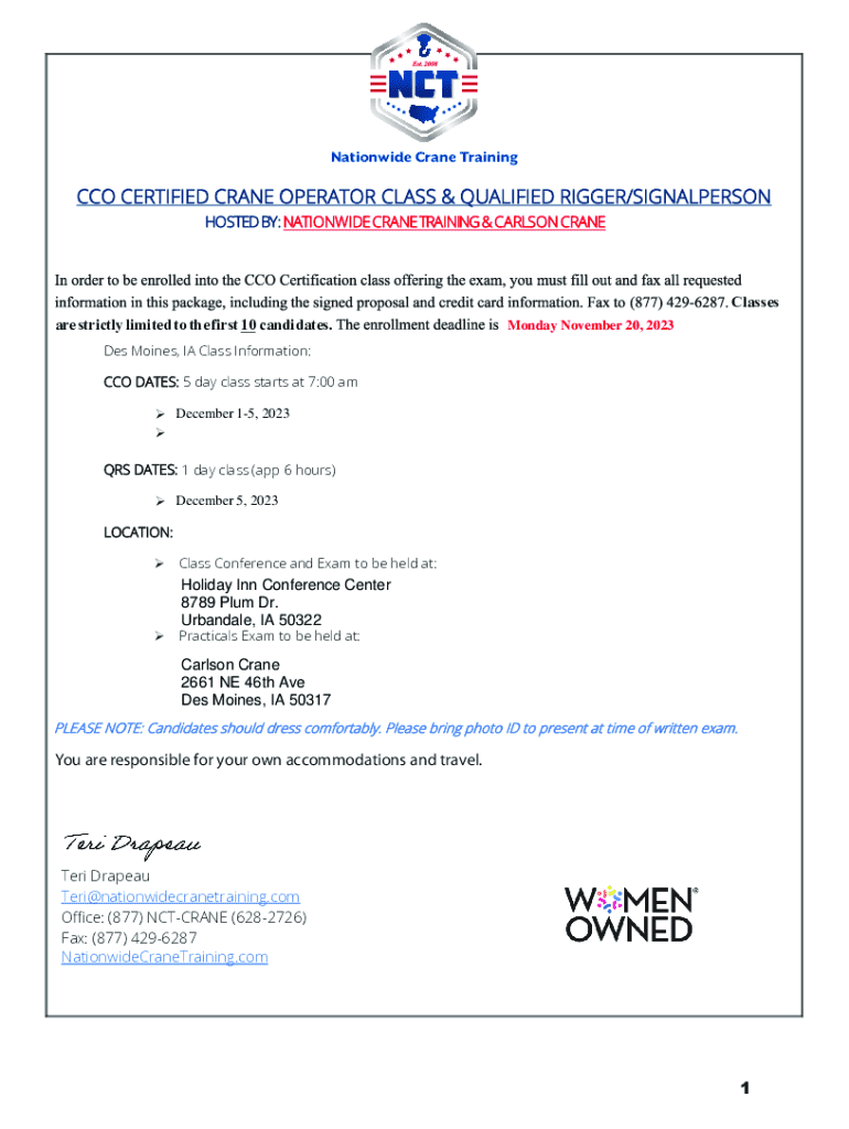 Get the free Nationwide Crane Training