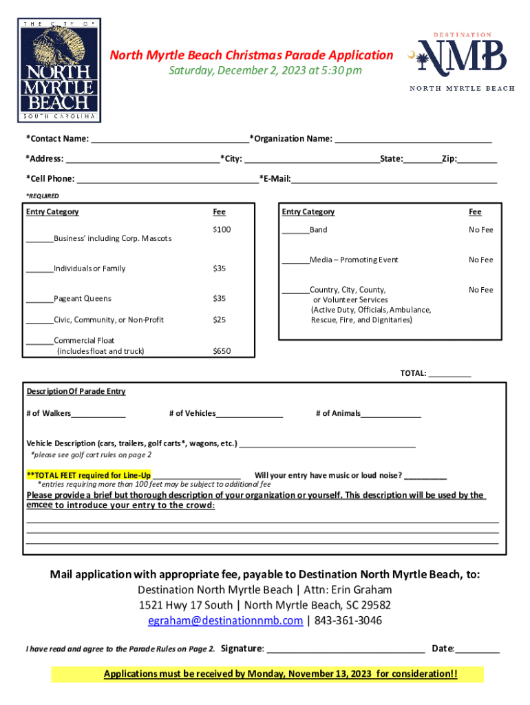 The North Myrtle Beach Christmas Form comprises several key sections that need to be filled out accurately. Here’s a detailed breakdown of the essential information required: