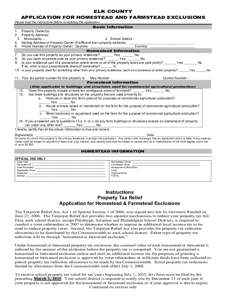 Get the free Application for Homestead and Farmstead Exclusions