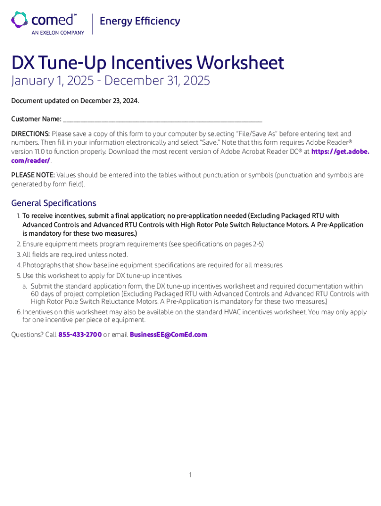 The DX tune-up incentives worksheet form is designed to streamline the application process for these valuable incentives. This form collects comprehensive data needed for eligibility and ensures a smoother submission experience. It is essential for any property owner wishing to take advantage of tune-up incentives, as it provides a standardized format for documentation.