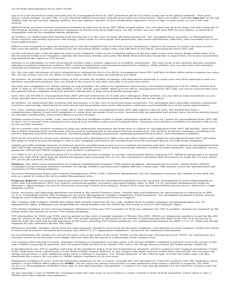 Get the free Lic of India Reassignment Form 3857