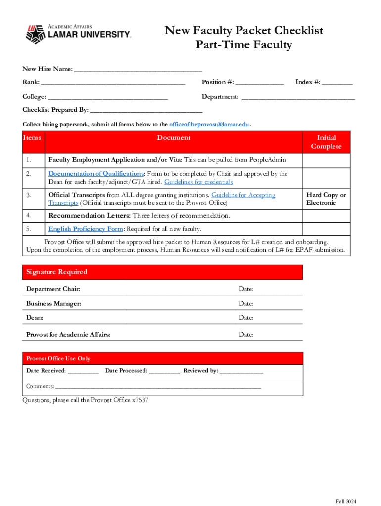 Fill out your new faculty packet checklist online with pdfFiller!
