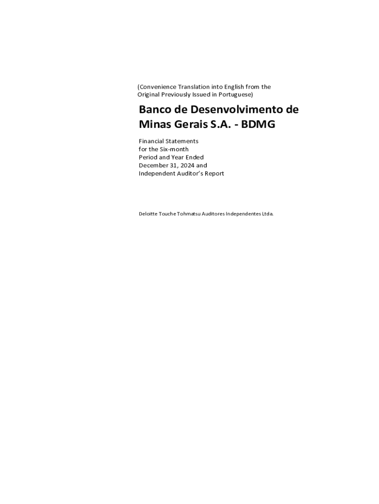 Get the free Banco De Desenvolvimento De Minas Gerais S.a. - Bdmg Financial Statements