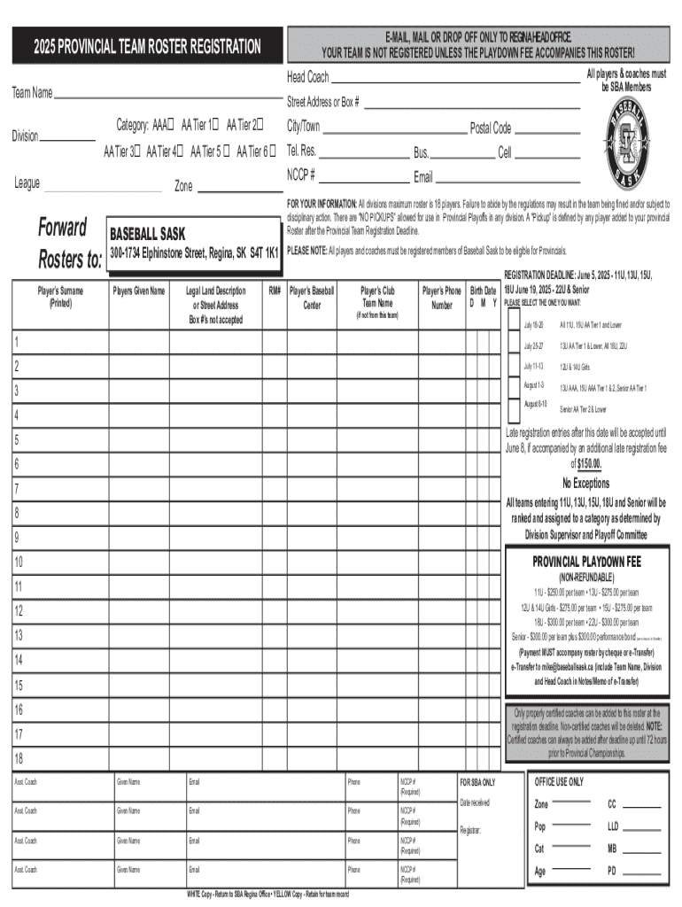 It's crucial for teams to stay informed of key deadlines related to the 2025 Provincial Team Roster Form. This includes registration cut-off dates and submission deadlines that can affect eligibility for provincial championships. Mark your calendars for these critical dates to ensure that your team remains in good standing.