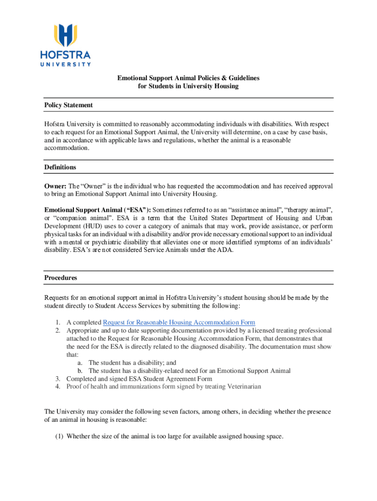 Get the free Emotional Support Animal Policies & Guidelines for Students in University Housing