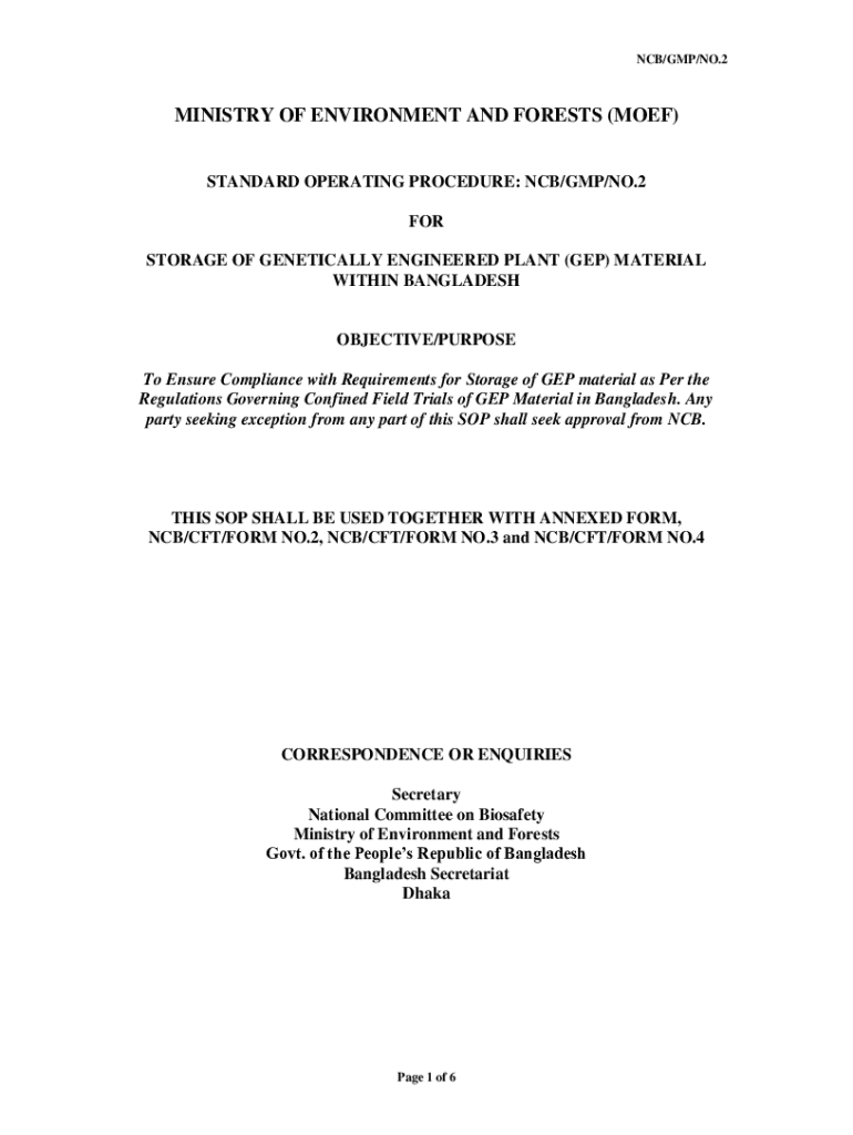 This document outlines the standard operating procedures for the storage of genetically engineered plant materials in compliance with regulations in Bangladesh, detailing requirements for storage,