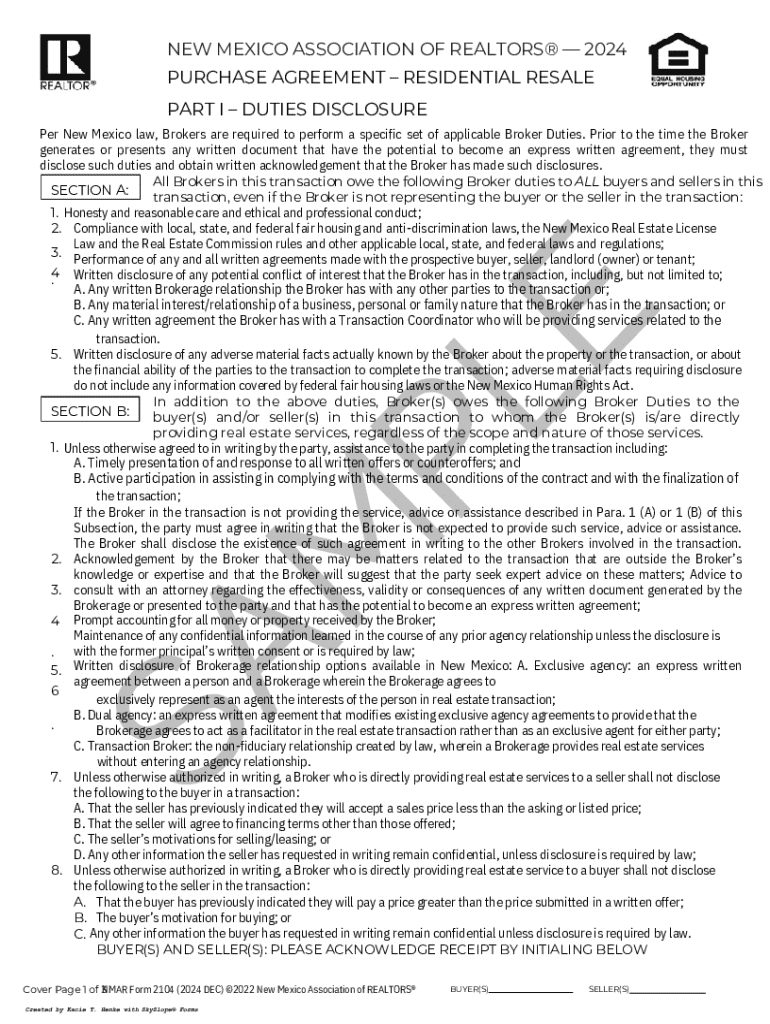 Este documento es un acuerdo de compra para la venta de propiedades residenciales en Nuevo Mxico, estableciendo la relacin y las obligaciones entre compradores y vendedores, as como los deberes de