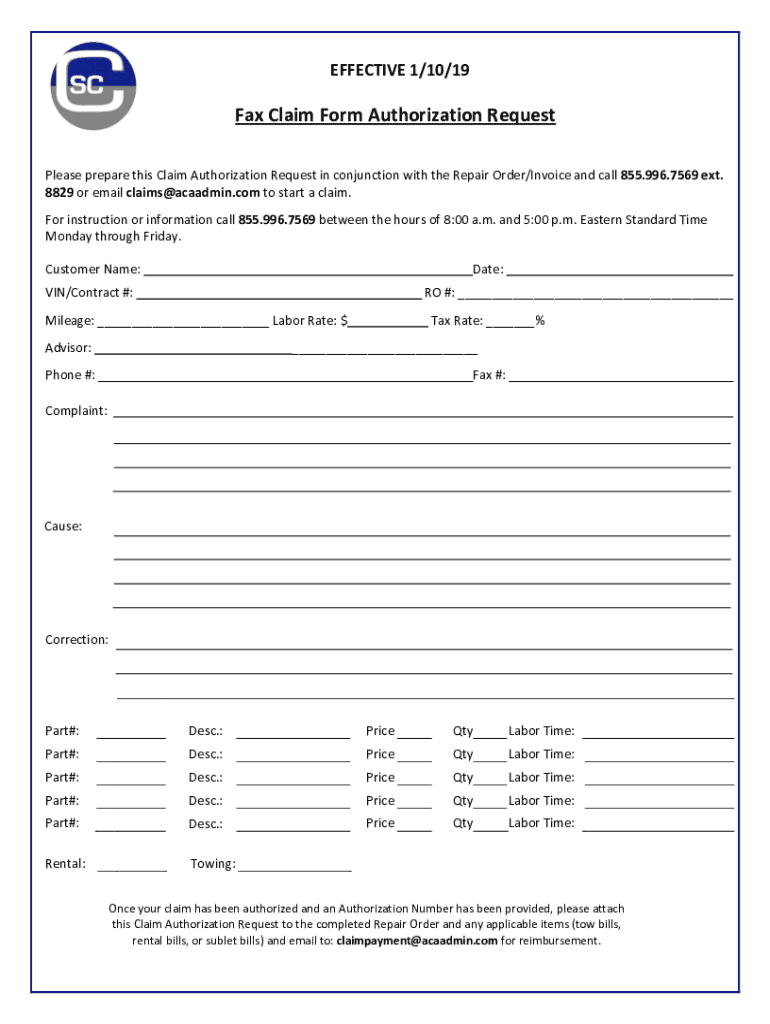 Fax Claim Form Authorization Form - How-to Guide