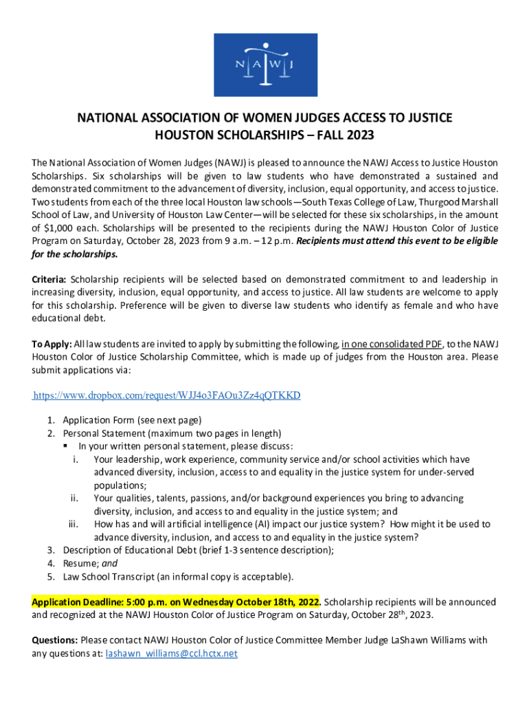 Get the free Nawj Access to Justice Houston Scholarship Application – Fall 2023