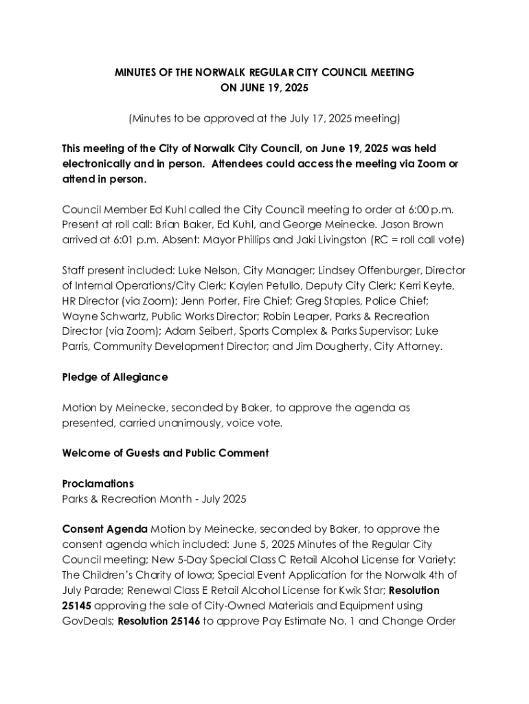 Get the free Norwalk City Council Meeting Minutes