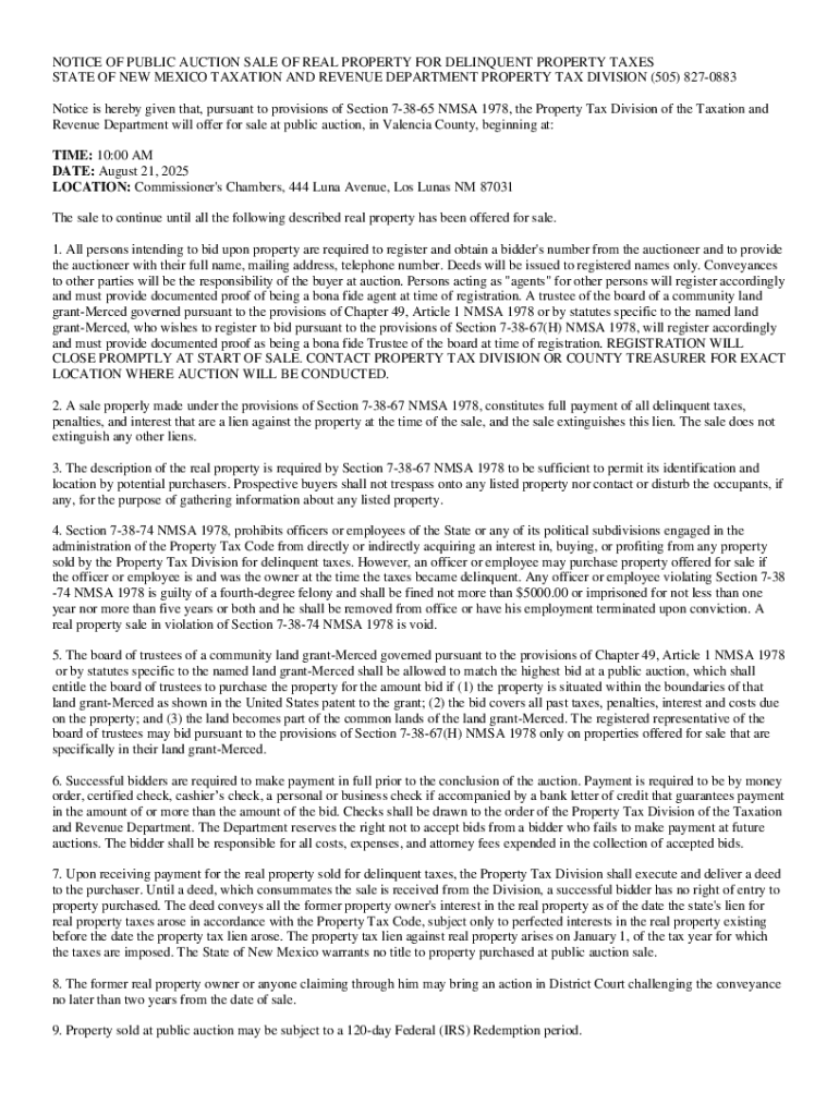 Get the free Notice of Public Auction Sale of Real Property for Delinquent Property Taxes