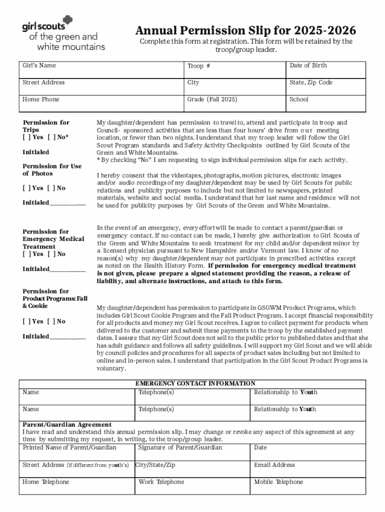 Get the free Annual Permission Slip for 2025-2026