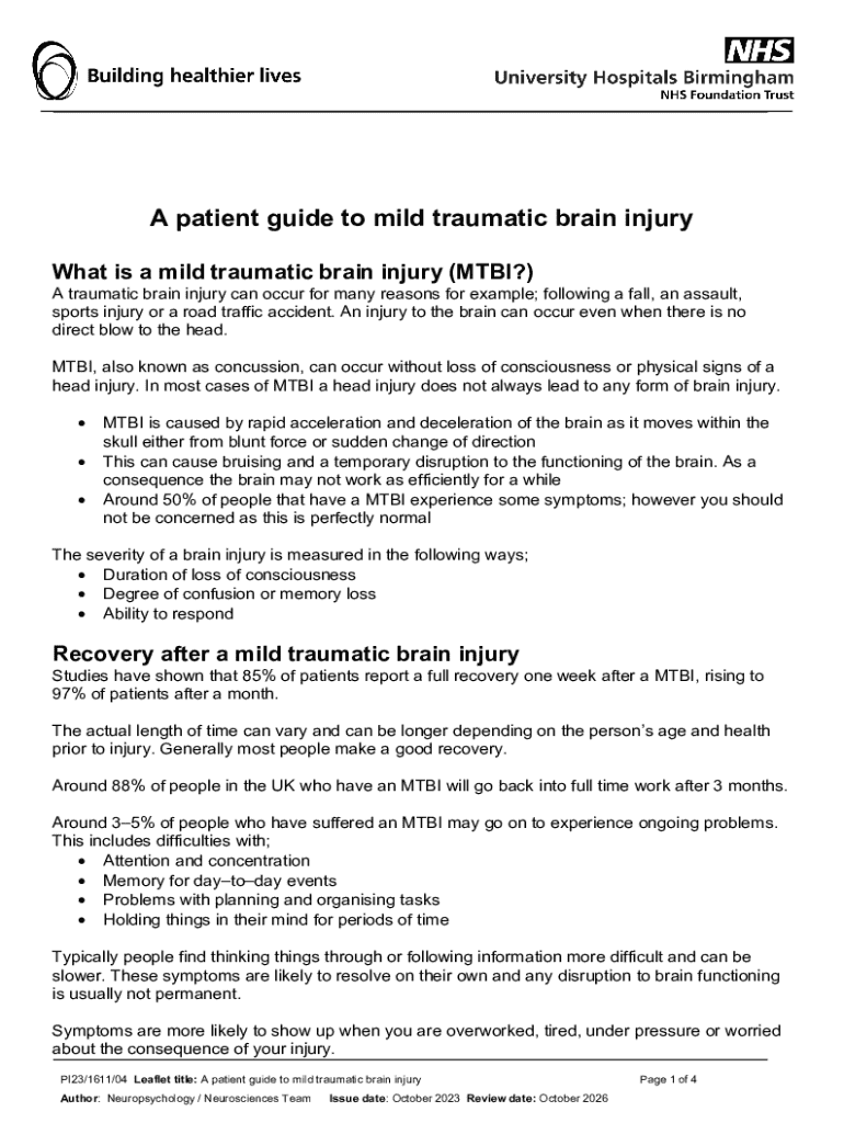 Get the free a Patient Guide to Mild Traumatic Brain Injury