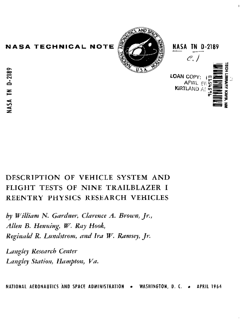 Get the free Nasa Technical Note D-2189 - ntrs nasa