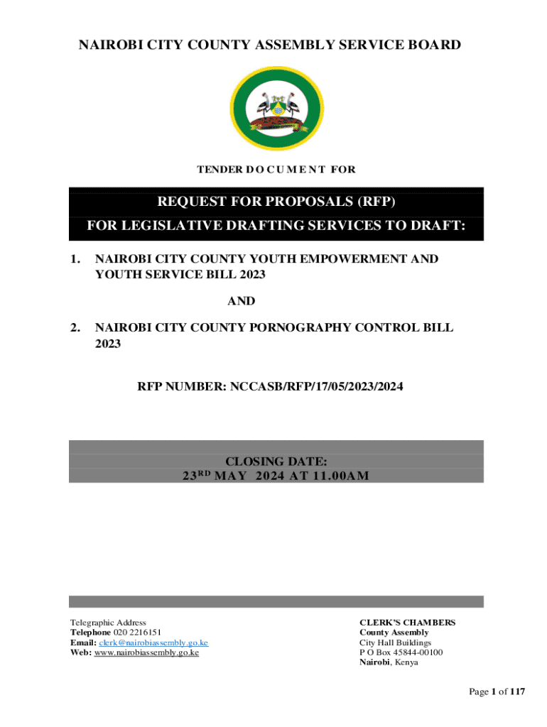 Get the free Nairobi City County Assembly Rfp for Legislative Drafting Services