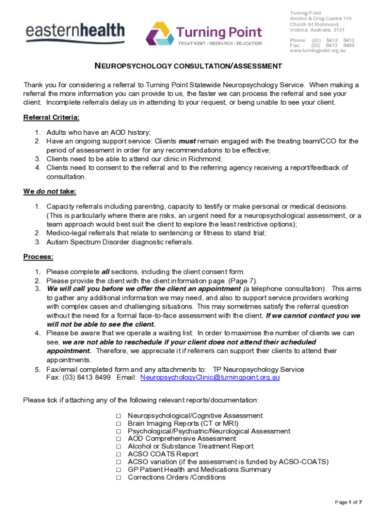 Comprehensive Guide to Neuropsychology Consultation Assessment Form