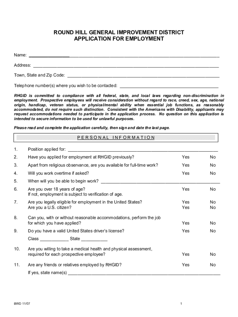 Get the free Application for Employment