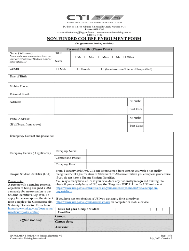 Get the free Non-funded Course Enrolment Form