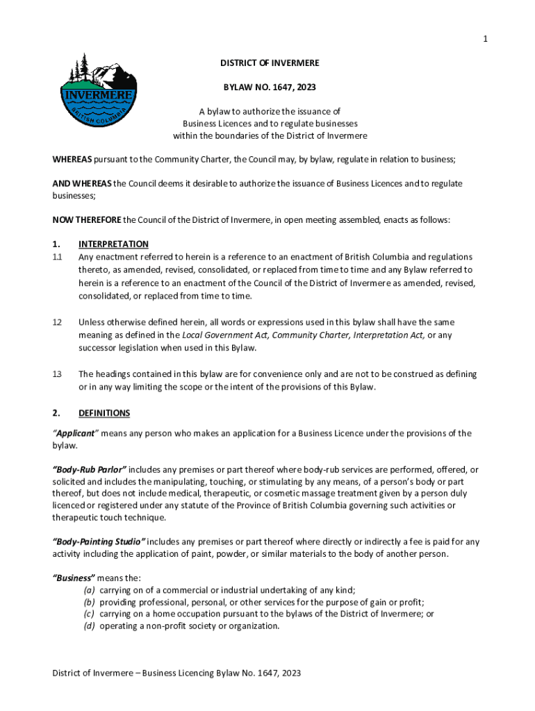Get the free Business Licencing Bylaw No. 1647, 2023