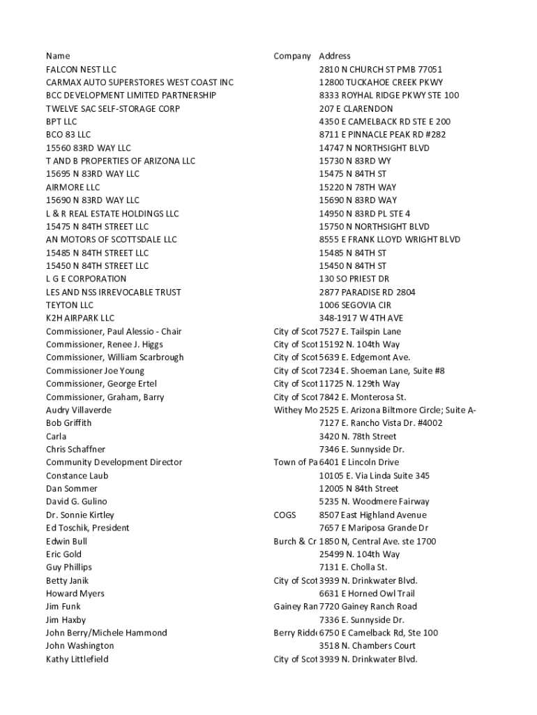 Get the free Name Company Address FALCON NEST LLC 2810 N CHURCH ST ...