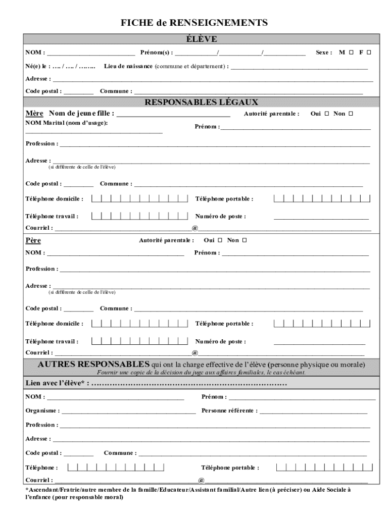 Obtenir le gratuit Fiche De Renseignements ÉlÈve