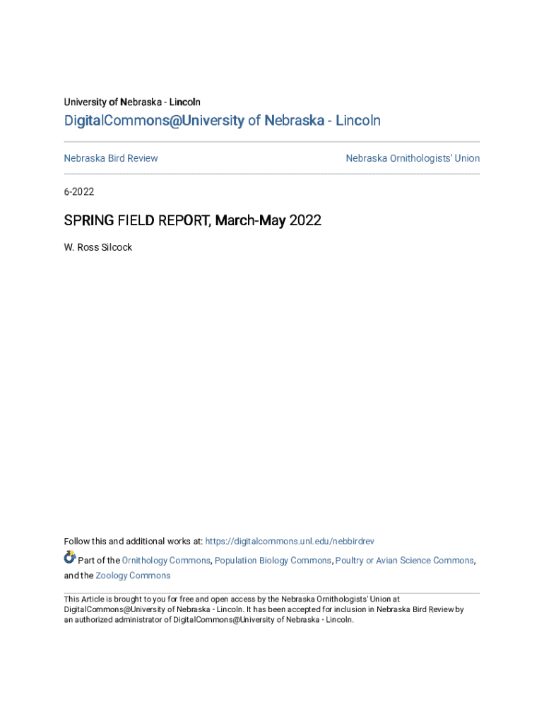 Get the free Nebraska Bird Review - digitalcommons unl