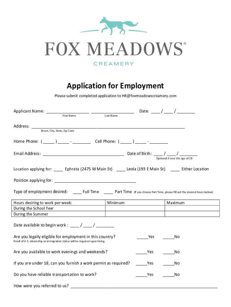 Get the free Application for Employment