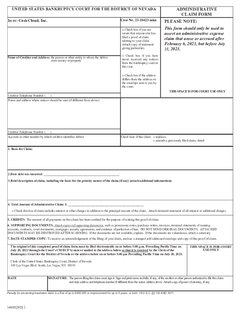 Get the free Administrative Claim Form