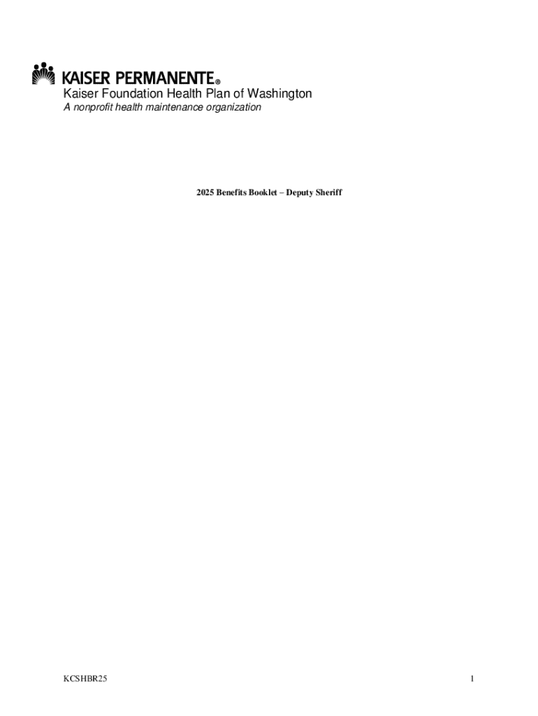 Get the free Kaiser Foundation Health Plan of Washington 2025 Benefits Booklet – Deputy Sheriff
