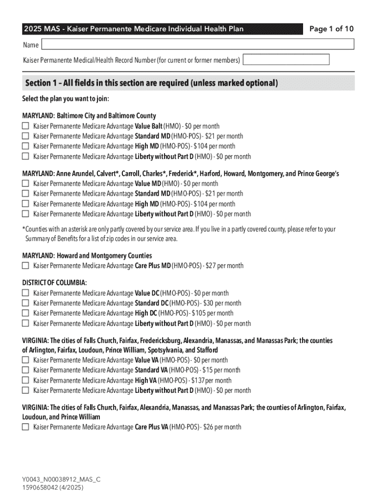 Get the free Kaiser Permanente Medicare Advantage Enrollment Form