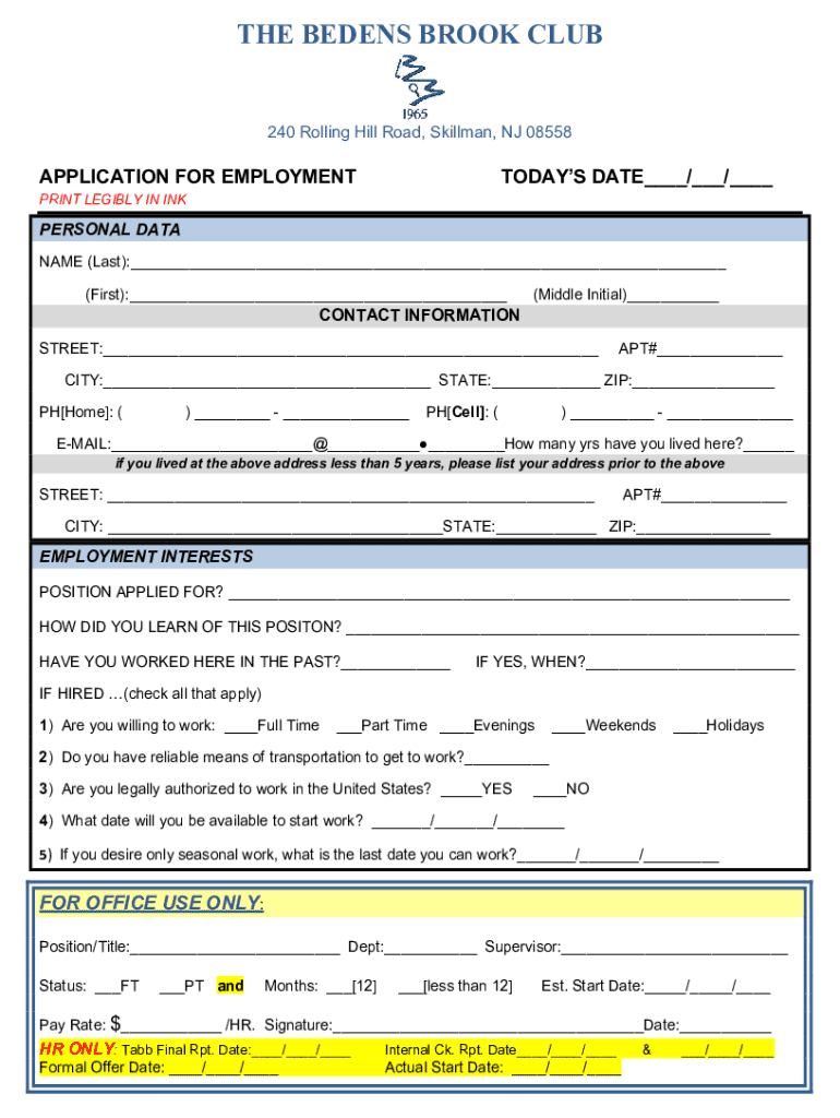 Get the free Application for Employment