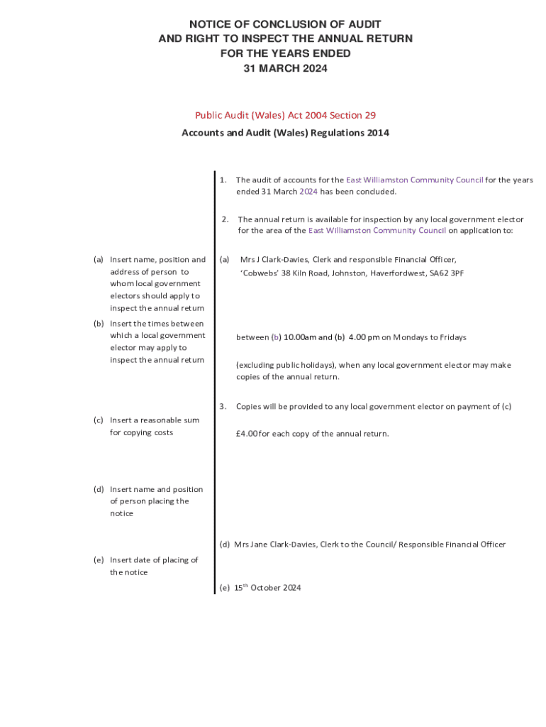 Get the free Notice of Conclusion of Audit and Right to Inspect the Annual Return