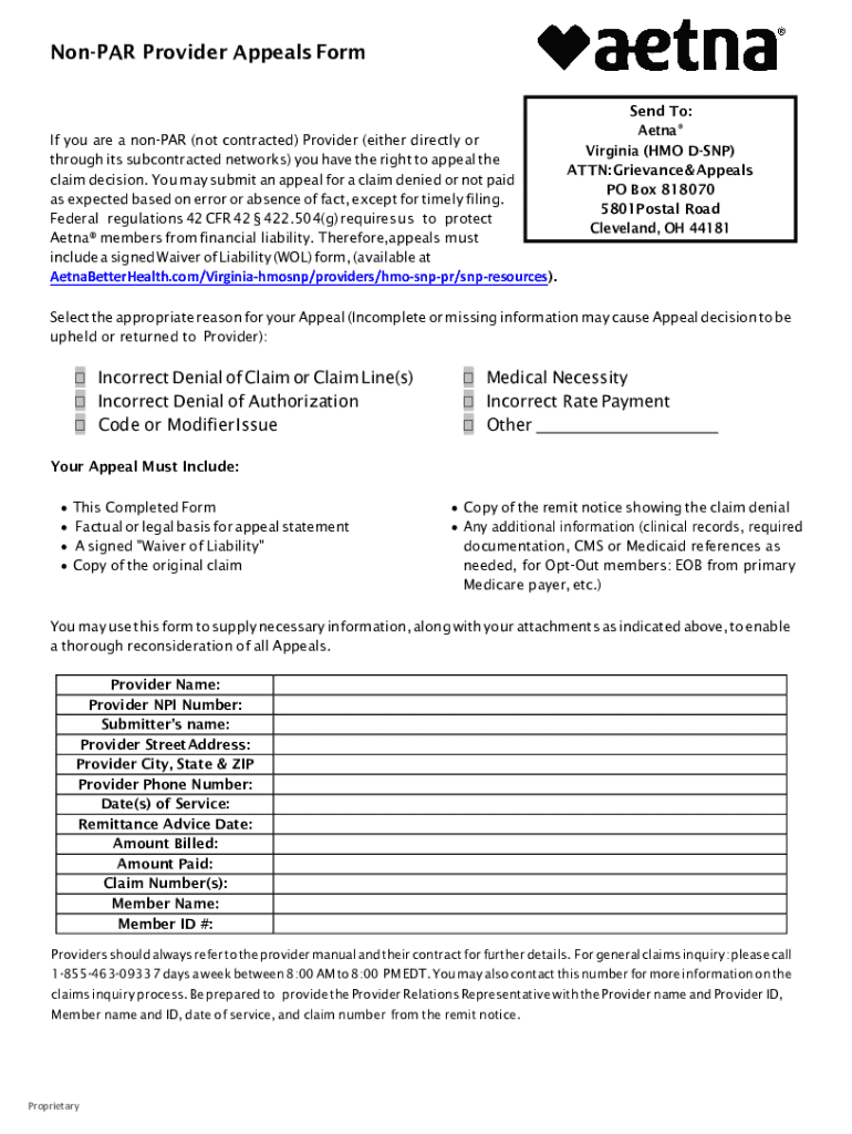 Get the free Non-par Provider Appealsform