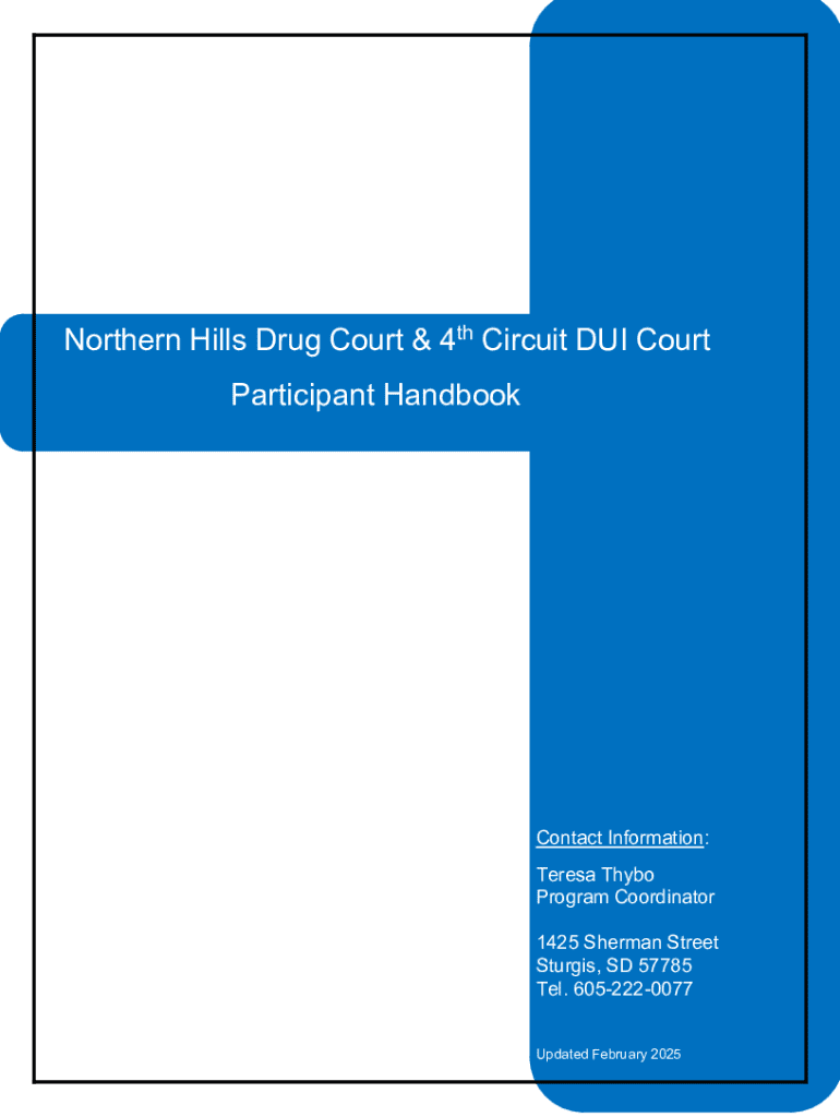 Get the free Northern Hills Drug Court & 4th Circuit Dui Court Participant Handbook - ujs sd