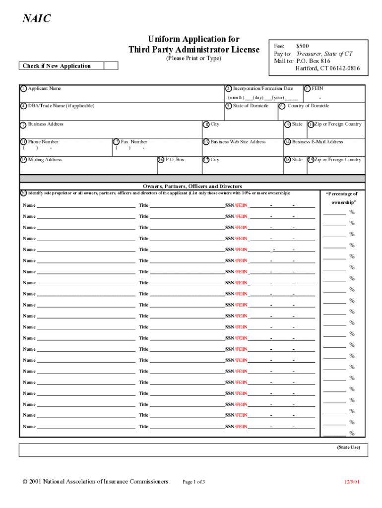 Get the free Naic Uniform Application for Third Party Administrator License