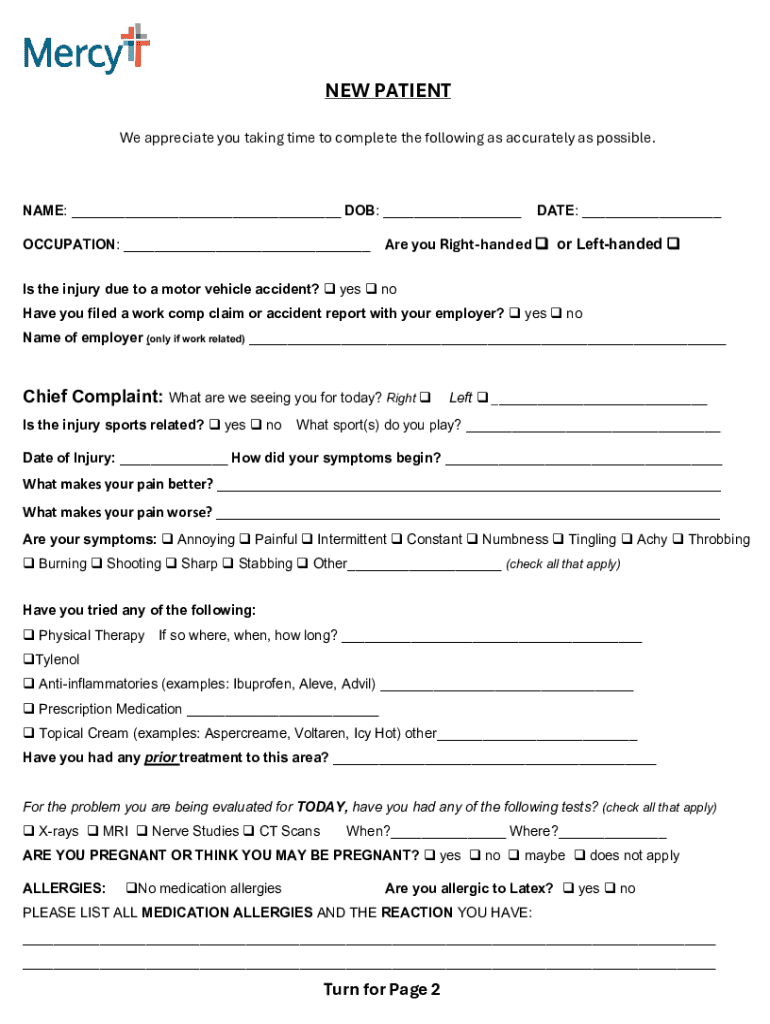 The new patient form consists of several essential sections that gather critical information from patients. The personal information section includes basic details like the patient's name, contact information, and date of birth. Accurate data in this section ensures healthcare providers can easily follow up and communicate effectively.