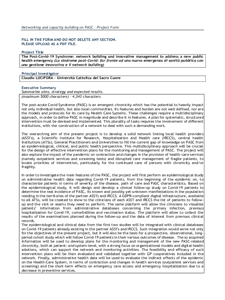 Get the free Networking and Capacity Building on Pasc – Project Form - centridiricerca unicatt