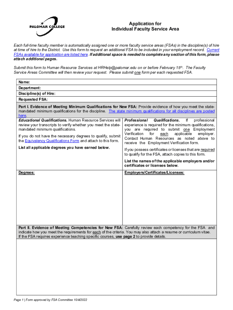 Get the free Application for Individual Faculty Service Area