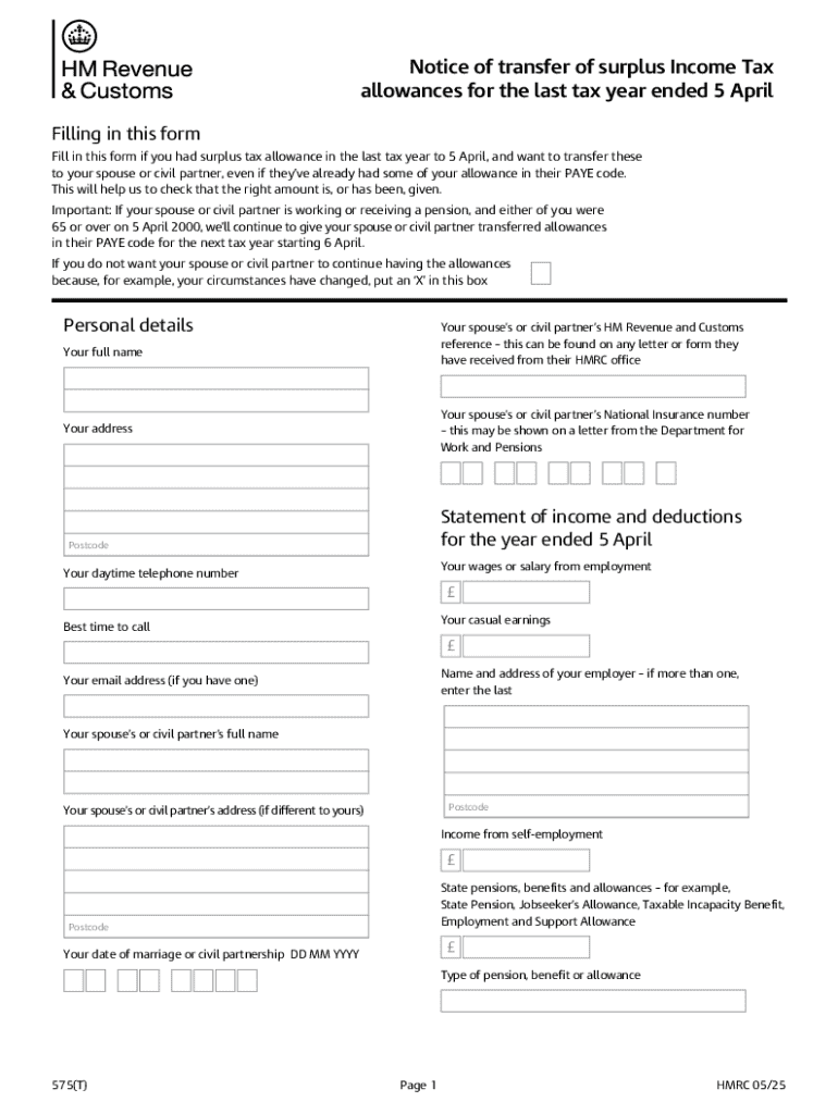 Get the free Notice of Transfer of Surplus Income Tax Allowances