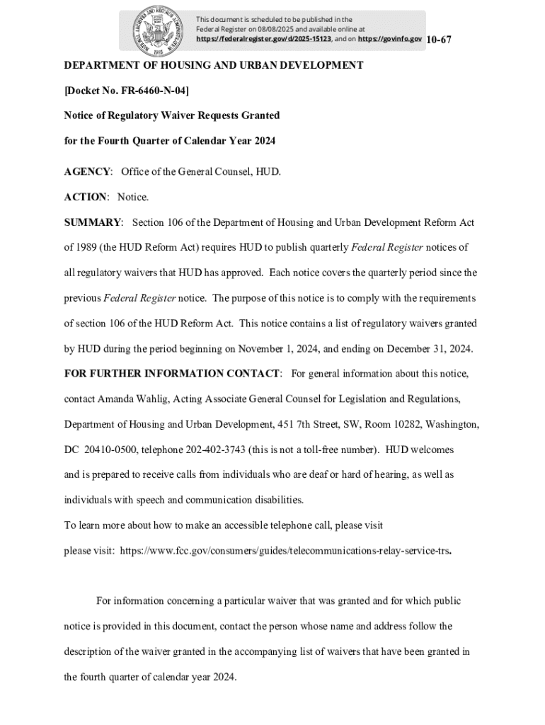 Get the free Notice of Waivers and Alternative Requirements for the ...
