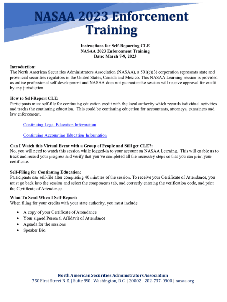 Your Complete Guide to the NASAA 2023 Enforcement Training Form